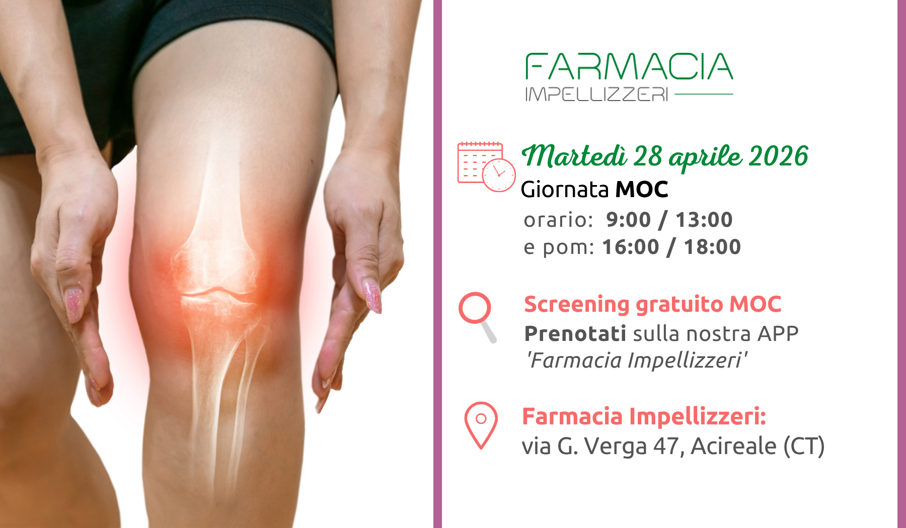Banco etico, reparto cosmesi, reparto celiachia e alimentazione speciale; consulenza nutrizionale; consulenza psicologica; sono i punti forti della Farmacia Impellizzeri con costanti eventi promozionali ed iniziative legate alla salute, al benessere ed alla bellezza. Un Robot meccanizzato facilita le procedure di consegna al banco, dimezzando i tempi logistici e aumentando quelli del customer care.