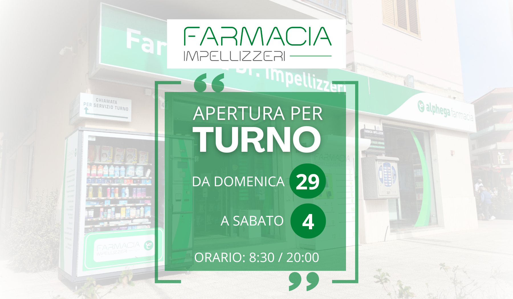Dal 1990, in una piccola bottega in via Paolo Vasta ad Acireale, la Farmacia Impellizzeri è oggi divenuta un importante presidio farmaceutico in via Giovanni Verga 47. Con i suoi 160 m², 5 vetrine e 5 postazioni per il personale pronto ad ascoltare, consigliare ed accogliere qualsiasi richiesta del cliente.