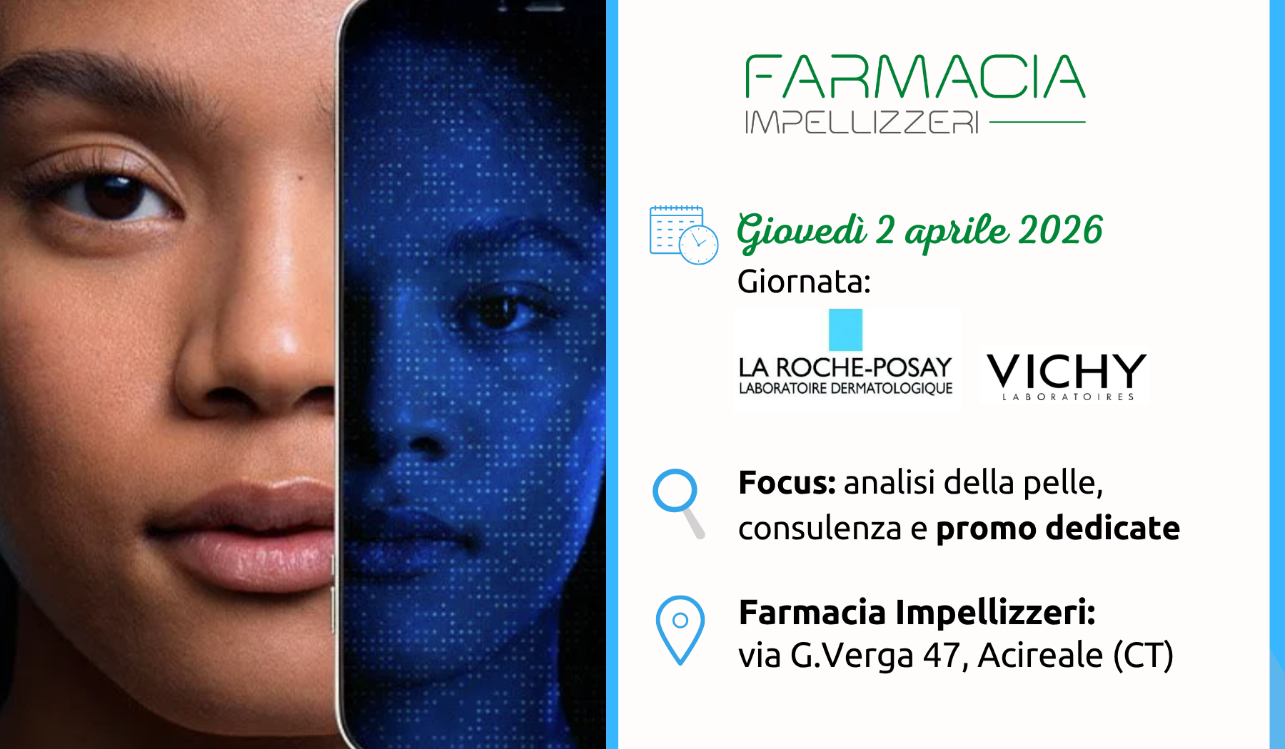 Dal 1990, in una piccola bottega in via Paolo Vasta ad Acireale, la Farmacia Impellizzeri è oggi divenuta un importante presidio farmaceutico in via Giovanni Verga 47. Con i suoi 160 m², 5 vetrine e 5 postazioni per il personale pronto ad ascoltare, consigliare ed accogliere qualsiasi richiesta del cliente.